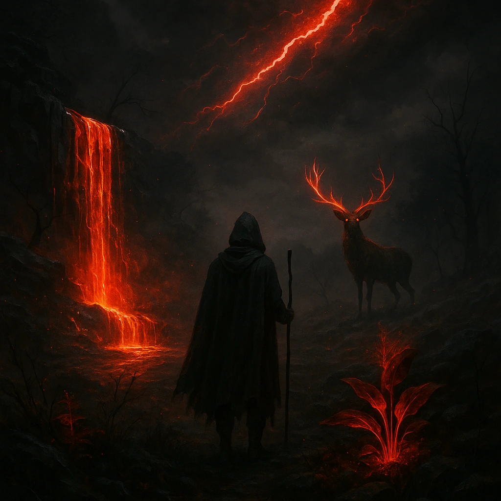 Überall in der Natur fand man das rote Glimmen von Zeryon, als hätte seine entfesselte Macht die Welt ins Chaos gestürzt.